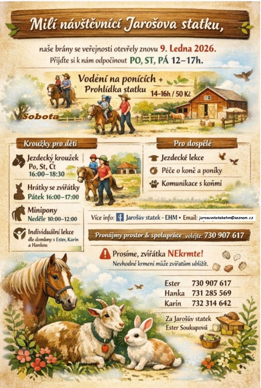 Prostor Jarošova statku převzali noví podnájemci, spolek EHM- Empatie Harmonie Mír, z.s. s přáním vytvořit otevřené a bezpečné zázemí pro děti, dospělé, rodiny i přátele statku.